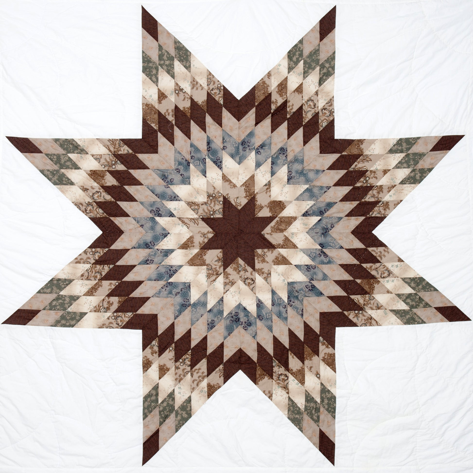 Bask in nature's palette with our Earthtones Star Quilt, where hues of brown and patterned earth tones come together in a symphony of rustic elegance. Like the shifting landscapes of the wilderness, each stitch tells a story of rugged beauty and untamed grace. Wrap yourself in the warmth of the Earthtones Star Quilt and let its natural charm infuse your space with the timeless serenity of the great outdoors.