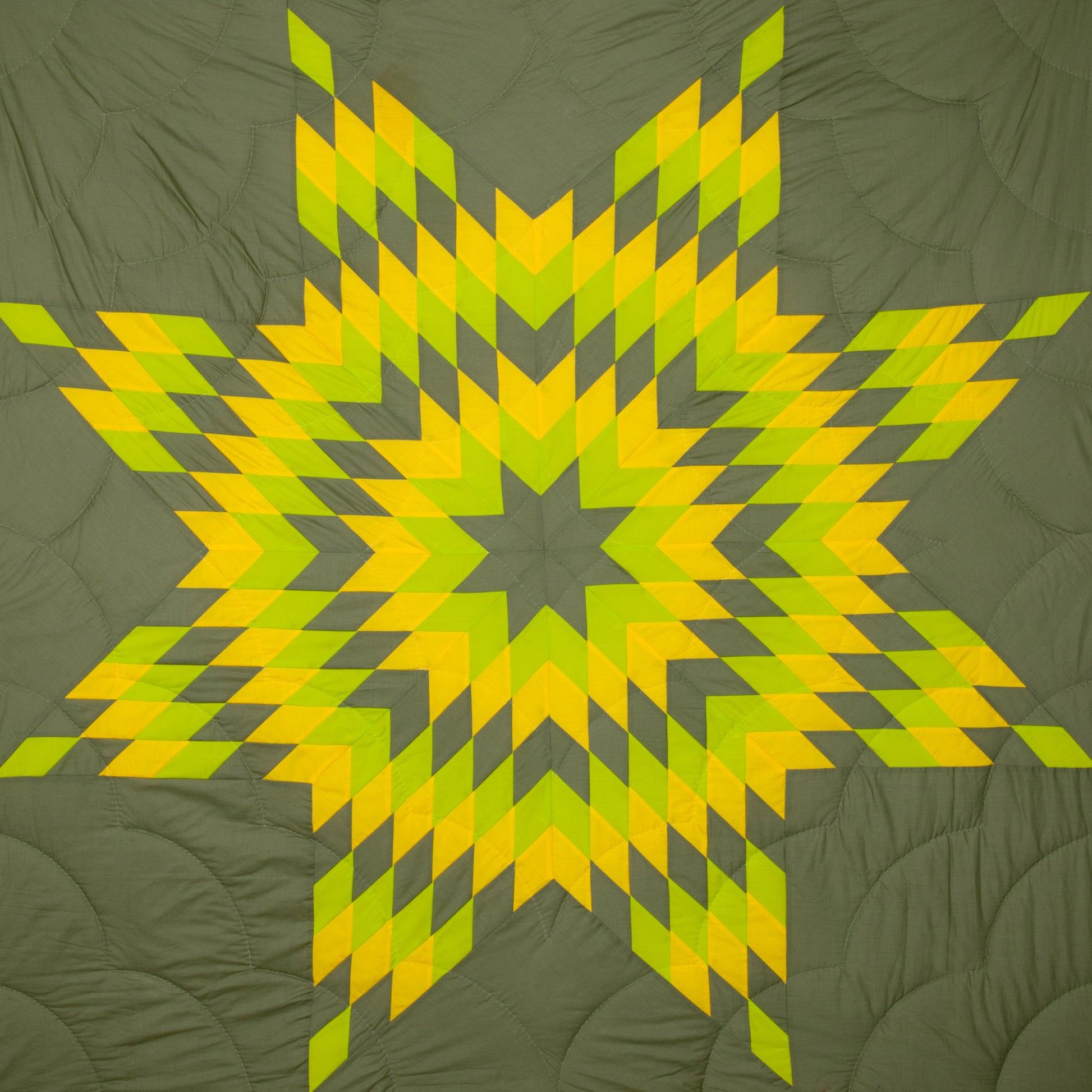 Immerse yourself in the lush tranquility of nature with our Moss Star Quilt, a testament to the verdant beauty of the earth. Crafted in a harmonious palette of greens and yellows. Each stitch weaves together a tapestry of woodland hues, inviting you to cocoon yourself in the soothing embrace of nature's embrace.